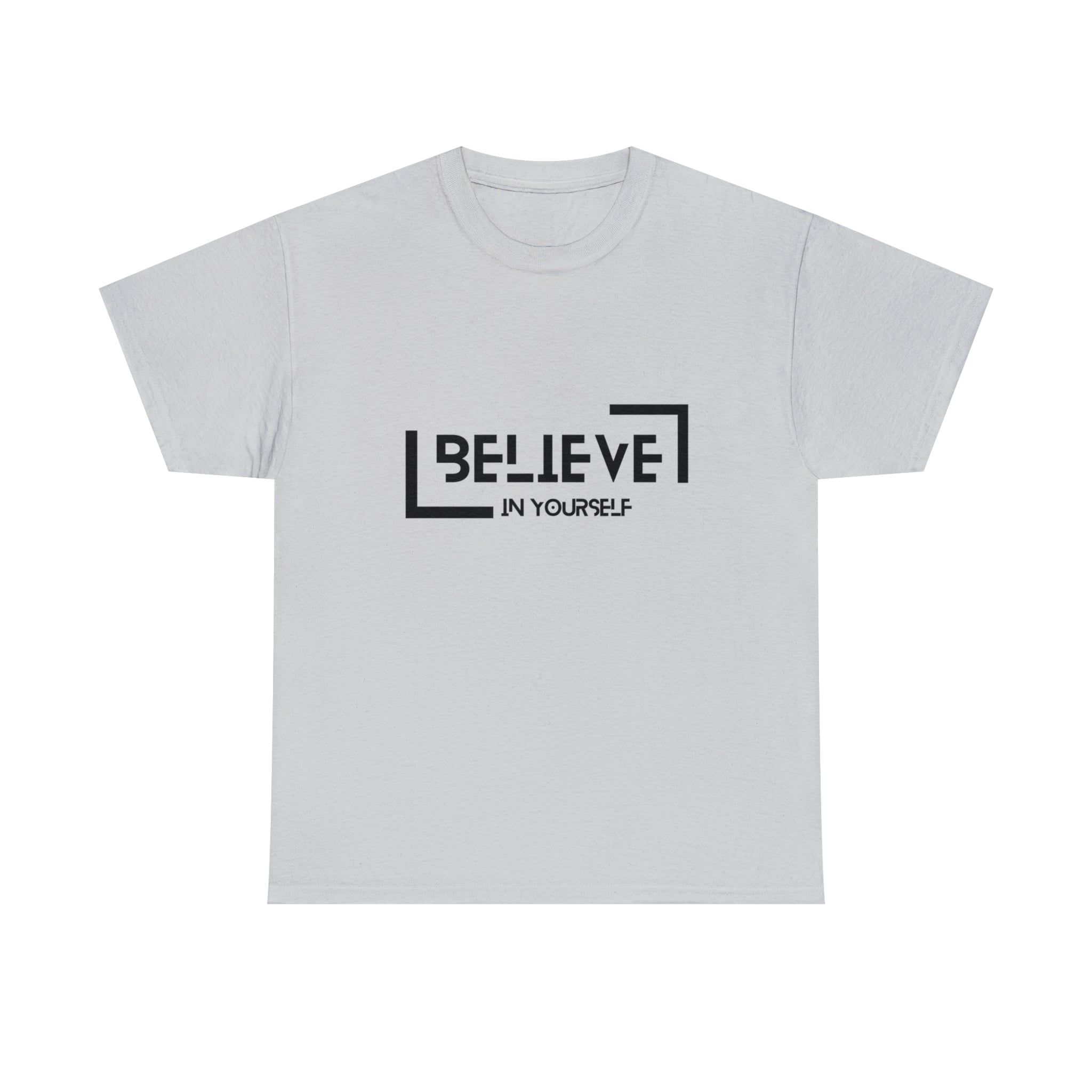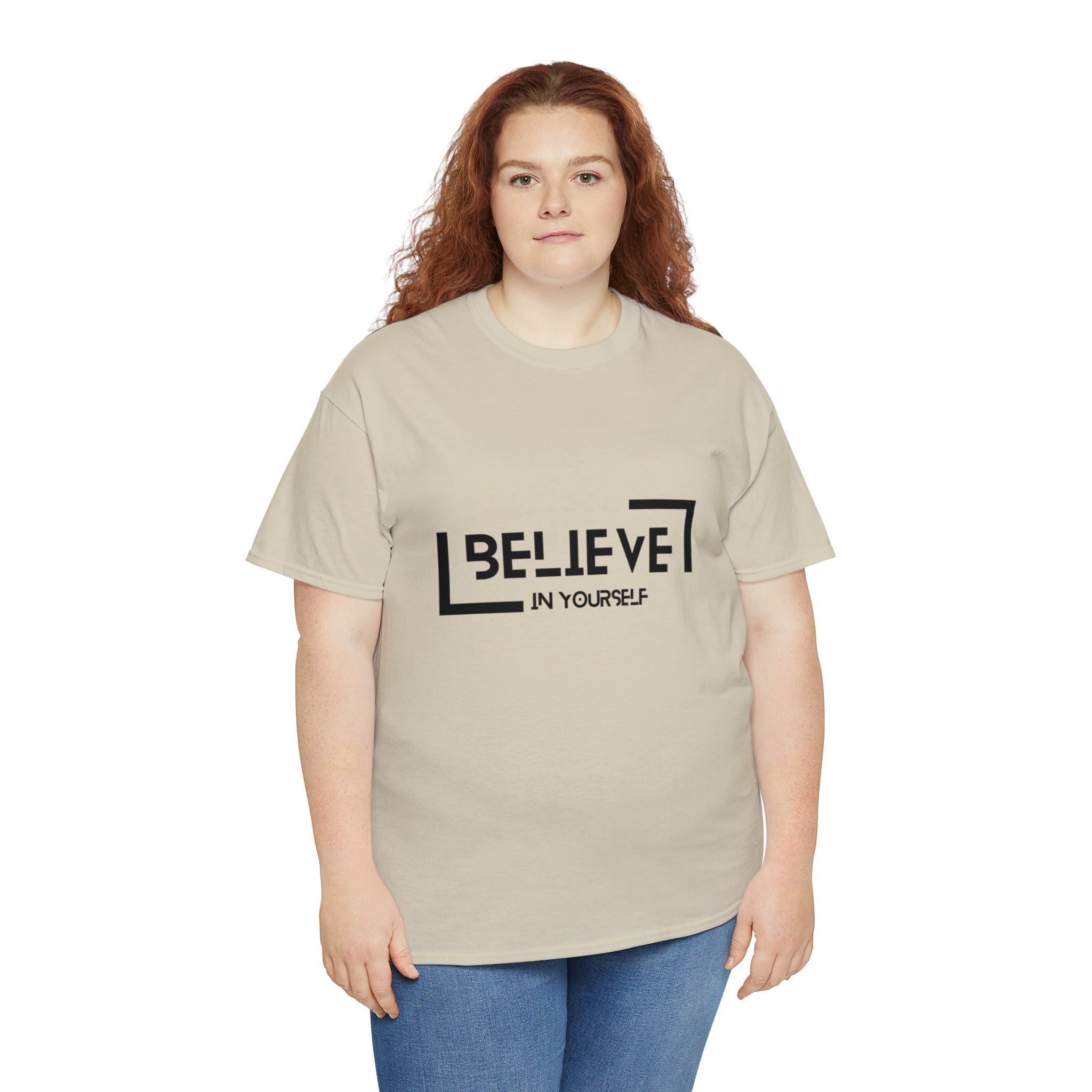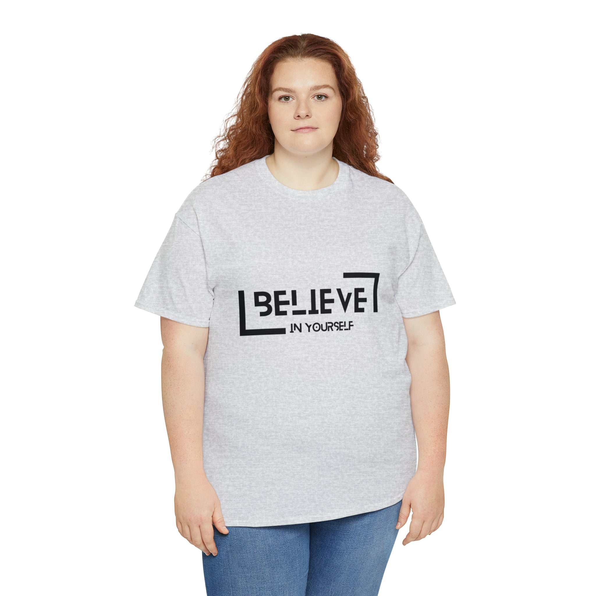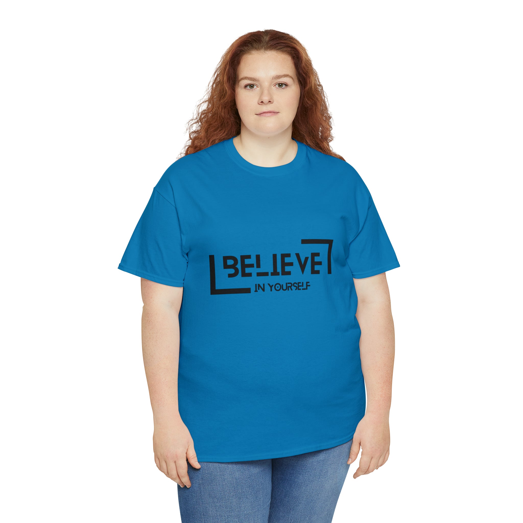 Upgrade your self-belief game with our 'Believe in Yourself' Unisex T-shirt - a wearable pep talk that turns doubters into achievers. Wear it like a boss, and let your confidence do the talking! Unlock your true potential with our T-shirt. A constant reminder to embrace your worth and chase your dreams, this tee empowers you to conquer the world with unstoppable determination.