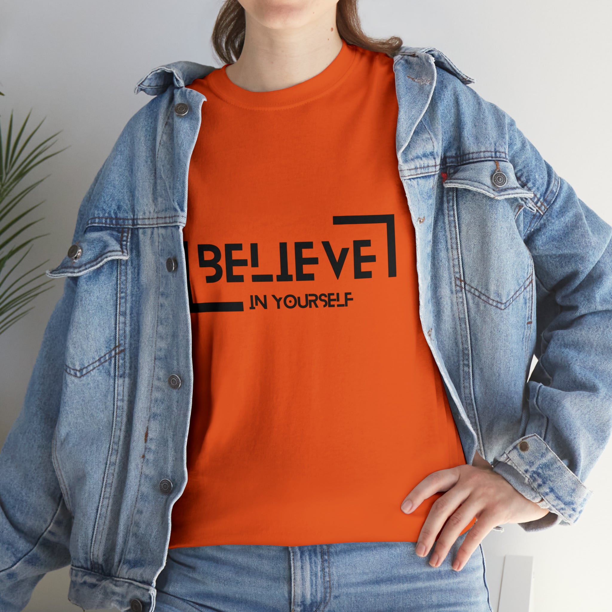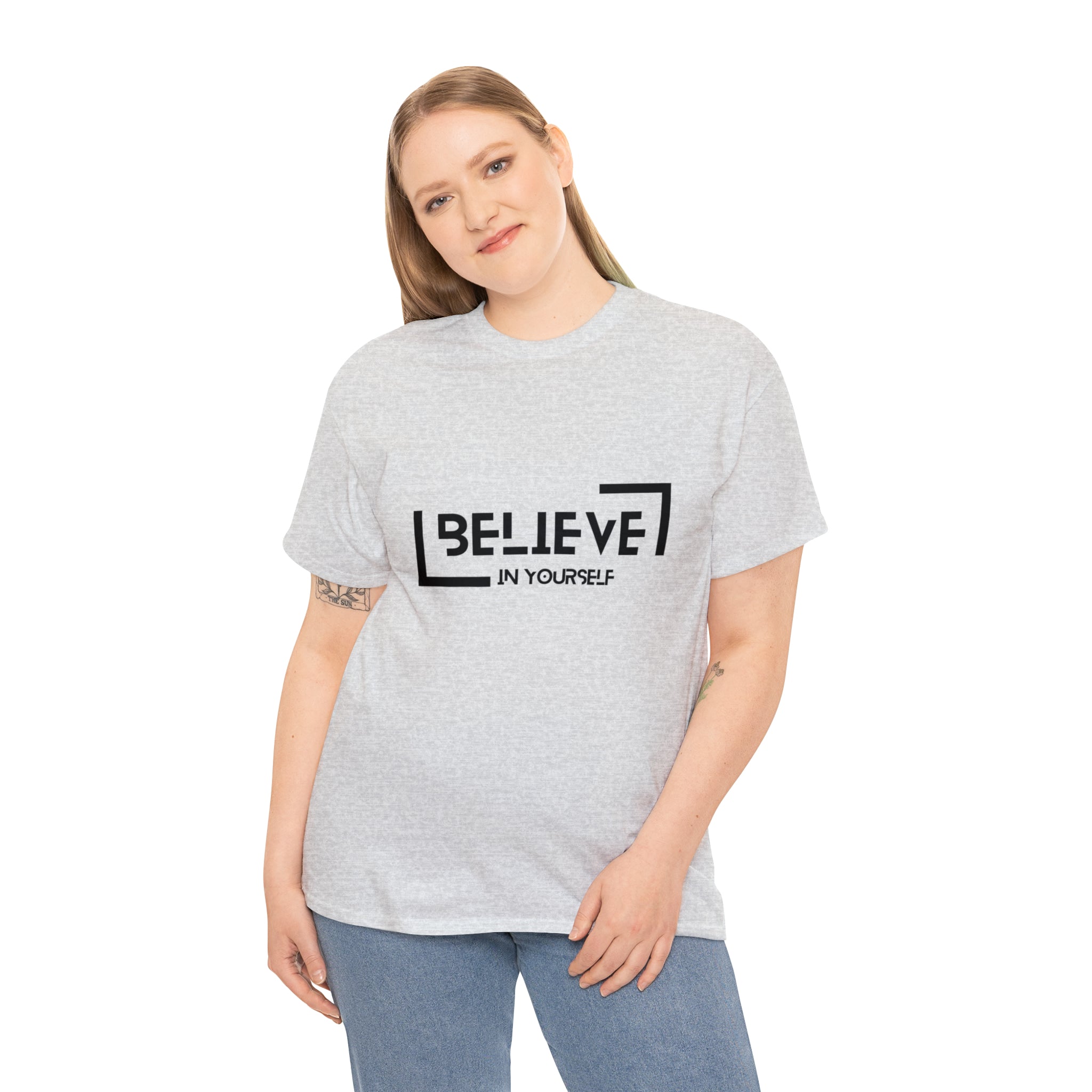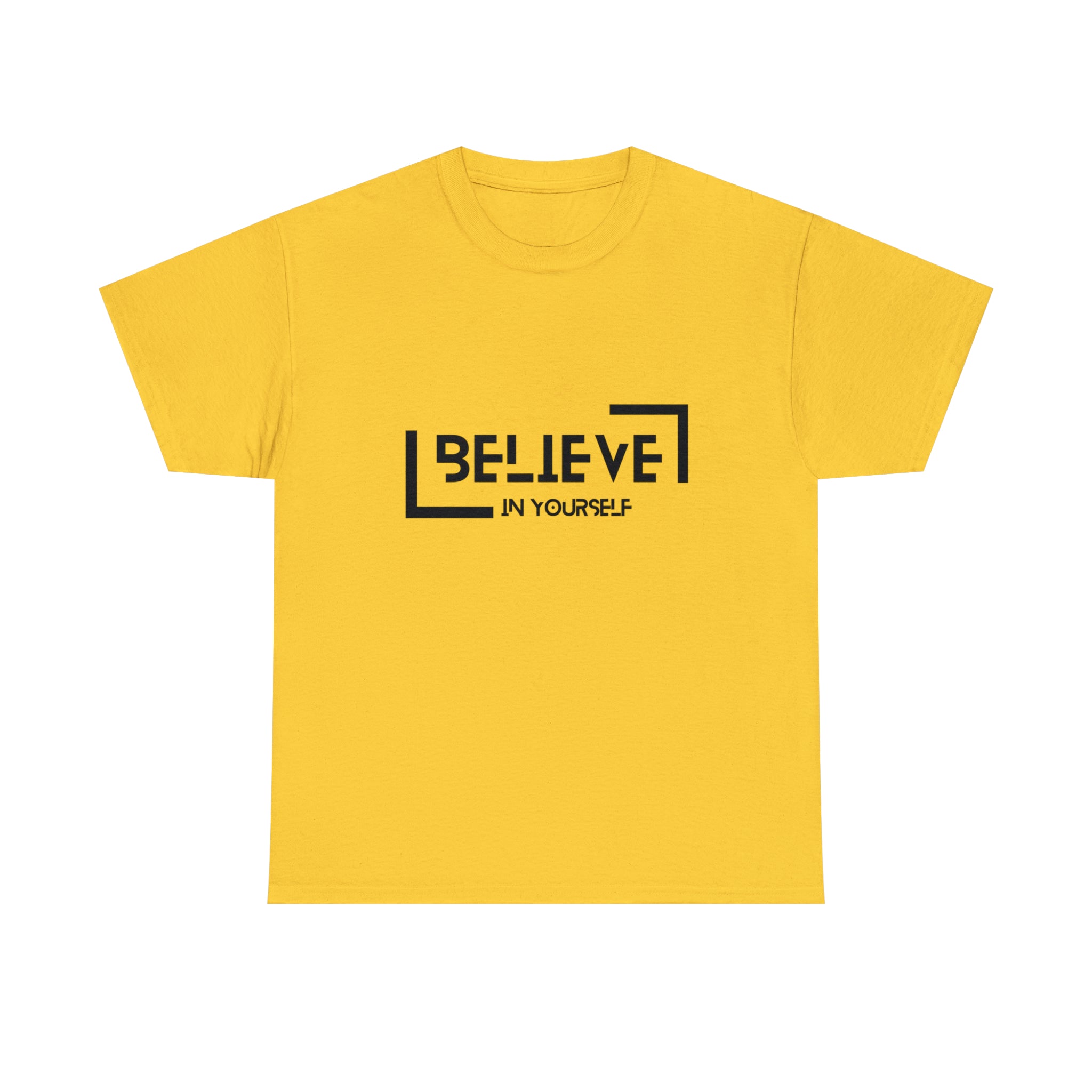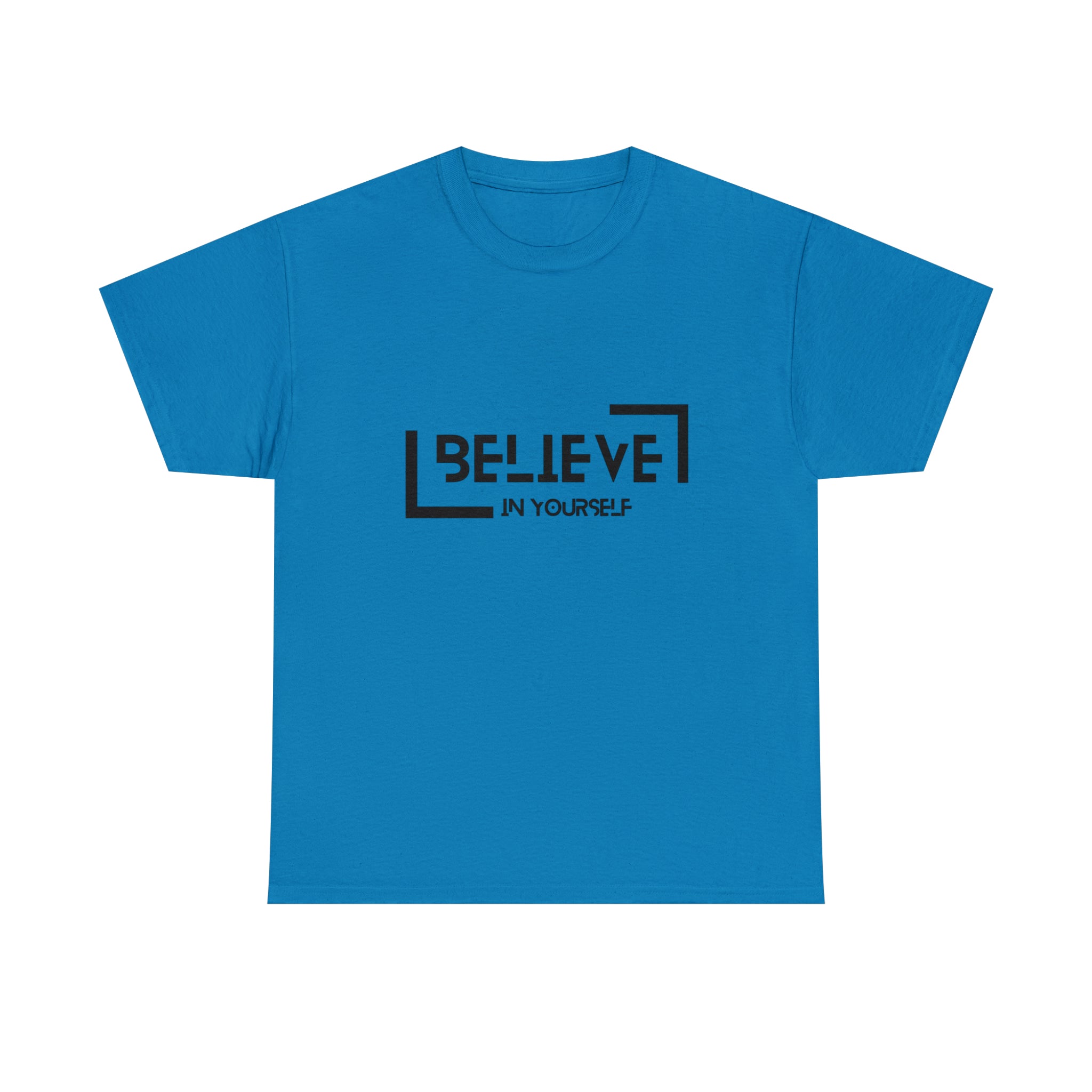Upgrade your self-belief game with our 'Believe in Yourself' Unisex T-shirt - a wearable pep talk that turns doubters into achievers. Wear it like a boss, and let your confidence do the talking! Unlock your true potential with our T-shirt. A constant reminder to embrace your worth and chase your dreams, this tee empowers you to conquer the world with unstoppable determination.